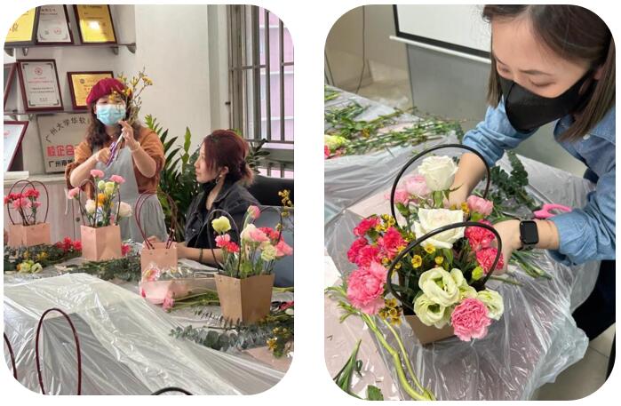 花藝師先給大家講解鮮花養(yǎng)護(hù)常識(shí),然后詳細(xì)介紹插花基本要領(lǐng),并逐一指導(dǎo)大家插花。