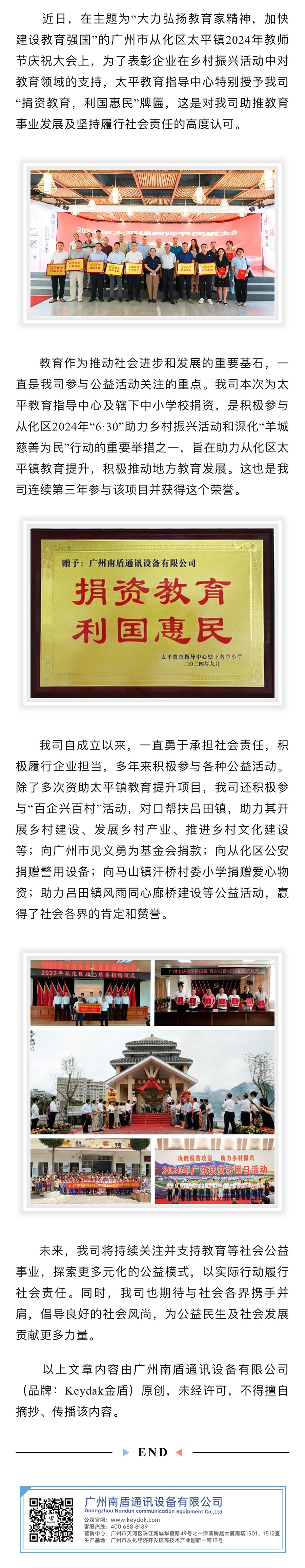 情系教育 彰顯社會擔(dān)當(dāng)!我司再次捐資從化區(qū)太平鎮(zhèn)教育提升項目