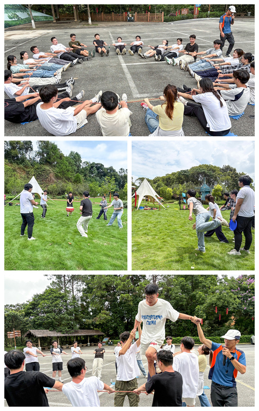 專業(yè)培訓(xùn)的余溫未散,戶外拓展便以更鮮活的姿態(tài)將集訓(xùn)推向高潮。即便天氣玩起 “變臉”—— 早上烈日炎炎,下午又突降大雨,但全體新員工一直全情投入到 “鼓舞飛揚(yáng)”“極限飛盤”“奪寶奇兵”“動(dòng)力圈” 等一系列兼具挑戰(zhàn)性與趣味性的團(tuán)隊(duì)活動(dòng)中,沒人喊累,更沒人退縮。
